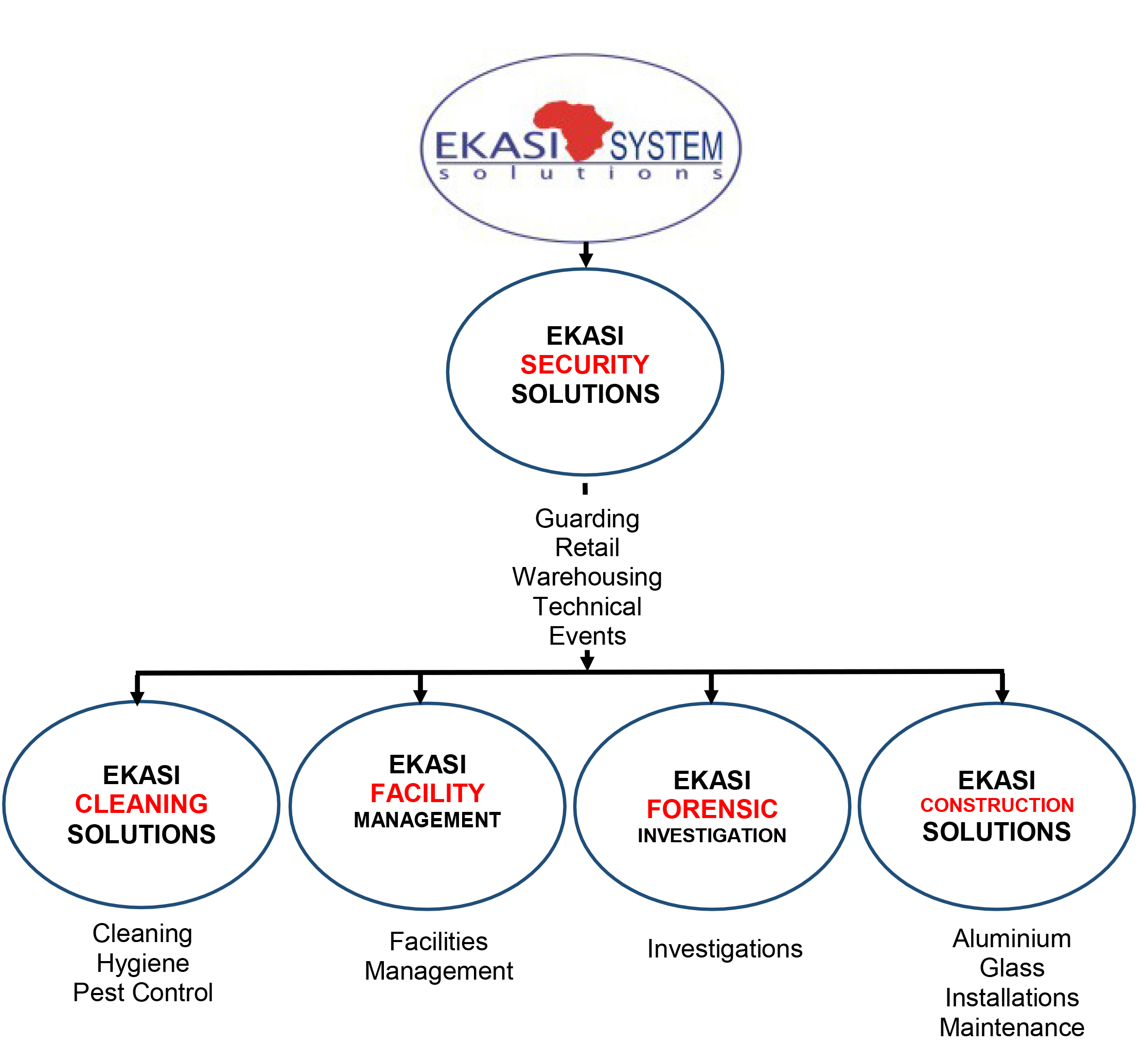 in separate legal entities (companies), all of whom are wholly owned subsidiaries of EKASI SYSTEM SOLUTIONS CC as illustrated below: